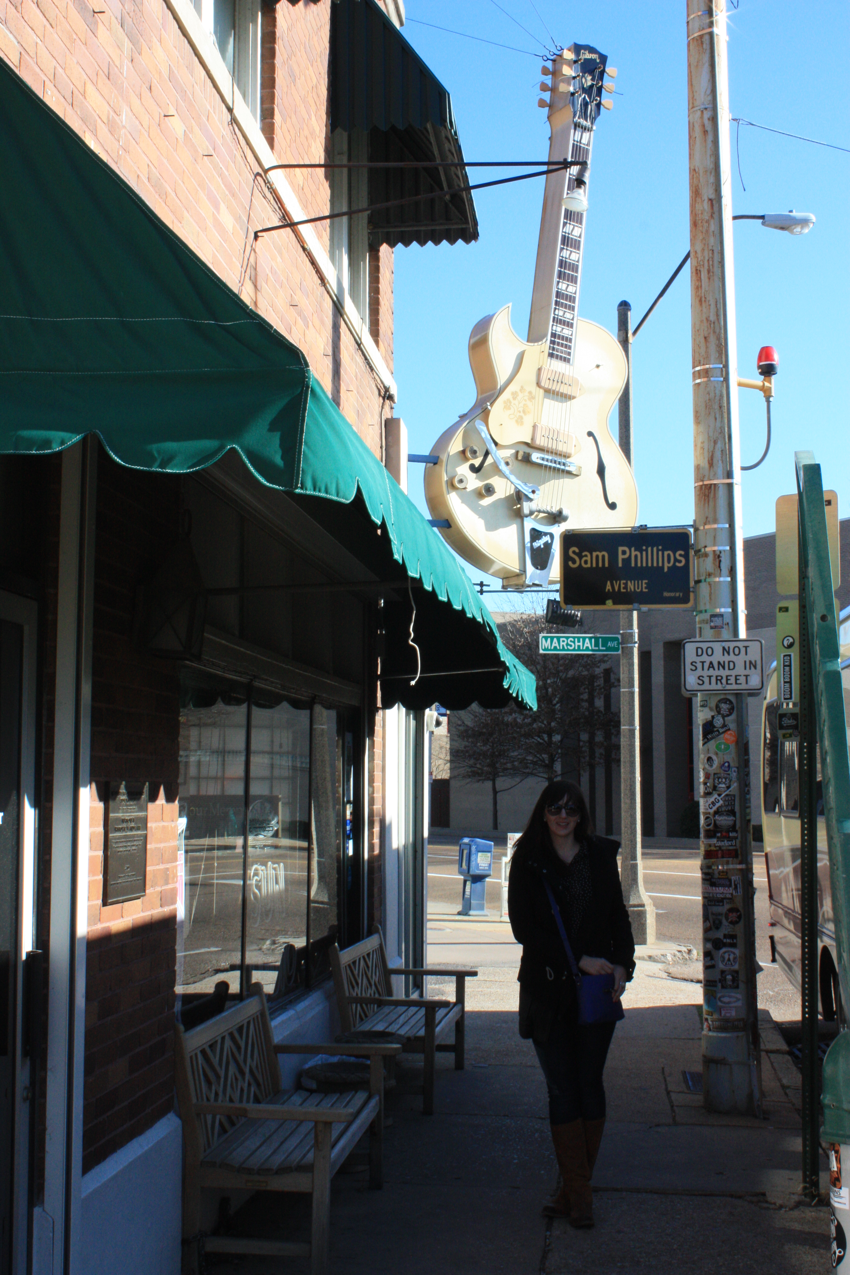 We said our goodbyes with Alex & Mike and headed west to Memphis. We noted there were still a whole lot of “-ville”‘s and some other interesting names along the I-40…. We contemplated moving to Bucksnort but quickly changed our mind and figured we may as well continue to JT’s hometown instead….After a short three hour drive, we arrived in Memphis, at Sun Studio. This is such an iconic and amazing place and it was totally inspiring, get your groove on, be in the same space as the greats, fantastic! We saw the studio that such greats as Elvis, BB King, Johnny Cash, Carl Perkins, Jerry Lee Lewis, and U2 have recorded in. The studio is still in its original condition and is used as a working studio on a regular basis. We touched the same mic as many of the greats. It was so incredible to experience!