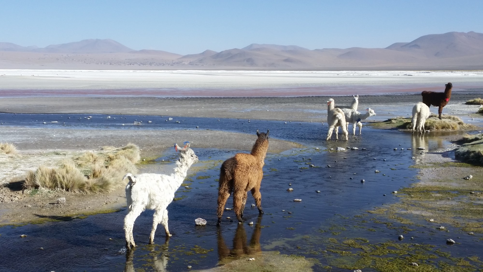 After a brief rest, we set off for Laguna Colorado. It. Was. Amazing. There were SO many flamingos in the waters, eating, sleeping, flying. Plus…there were llamas! Laguna Colorado, means the coloured/red lagoon and indeed, the colours = wow. We were feeling pretty good and took lots of fun photos, pretending to be flamingos, and otherwise goofing off.
